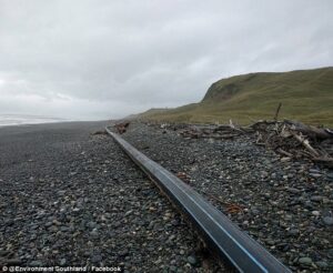 A pipe-like object about 100 meters long was found on a beach in New Zealand and was brought ashore from the sea. Those who saw the object report that it is extremely heavy and is made of plastic. Also, at each of the two ends, there are heavy pieces of metal. The person who made this discovery first is an officer on the Te Waewae quay, who reports the mysterious object to the competent authorities.