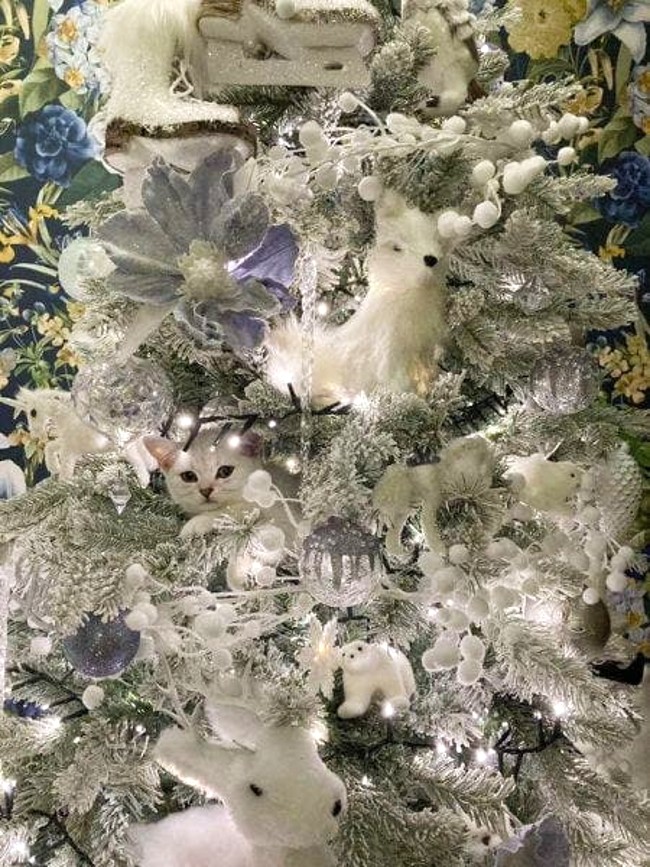 “Being a white cat, I couldn’t see the Christmas tree because it was matte white. Eventually, I noticed two little eyes watching me “she stated
