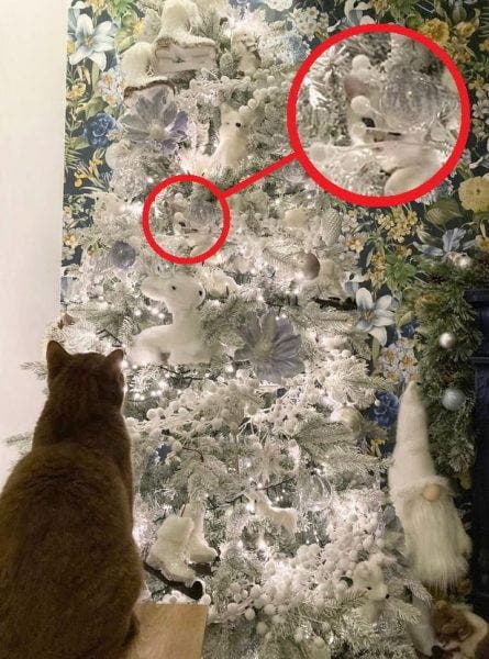 All internet users are amused by a photo of a Christmas tree! And it all begins with a cute kitty! Few people are able to locate it in the image that currently dominates the world.