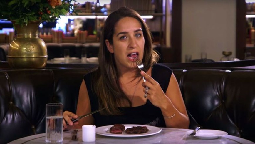She claims after her hearty supper at a Chicago steakhouse, “I feel like I’m drunk on meat.”