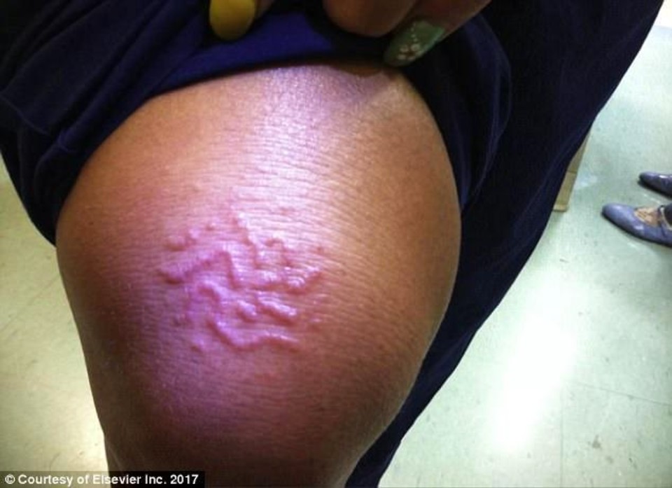 It seems that the woman had just returned from a wonderful vacation in the Caribbean and was feeling very well, but a few weeks later, several itchy pimples appeared on her knees. The emergency doctors, where her family doctor had sent her, told her that she had a classic case of parasitic infection, also known as the migrant’s larva.
