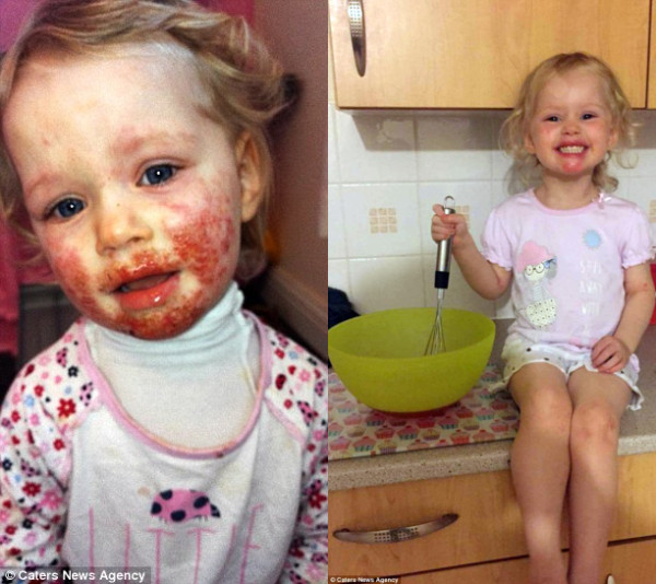 Her face has cleared up since receiving medication, despite doctors initially diagnosing her with eczema, and it is hoped that the virus will never recur.