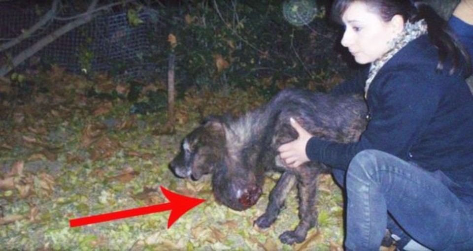 She found a dog on the street, had no owner and had a huge swelling in his neck, so she immediately took him to the vet!
