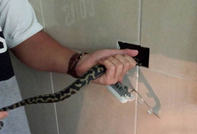 When he removed the plug from the wall and saw what was in the hole behind her, he was shocked: a python had nested there! Although he managed to remove the snake with specialized help, the man did not want to live in that house and moved soon.