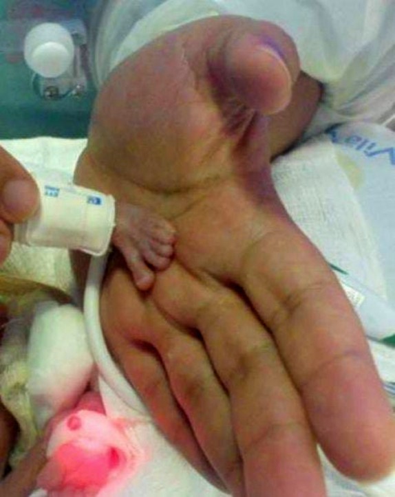 The baby boy was born at 24 weeks, so small that one hand was the thickness of an adult’s finger.