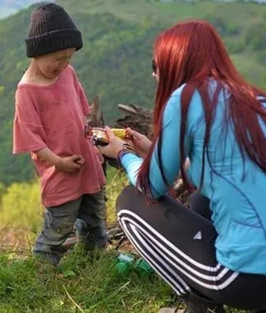 An incredible, emotional thing is captured in this photo, a child who sits every day and guards the sheep on the hills starts to cry when someone brings him, sweets.