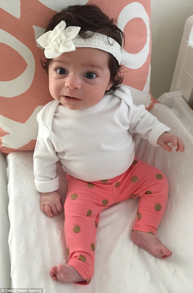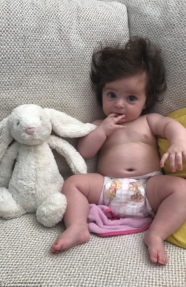 Now, 6 months after giving birth, little Alexis already has long shoulder-length hair. Her parents had begun to worry when they saw the ultrasound, she seemed to have hair on her forehead, back, and buttocks.