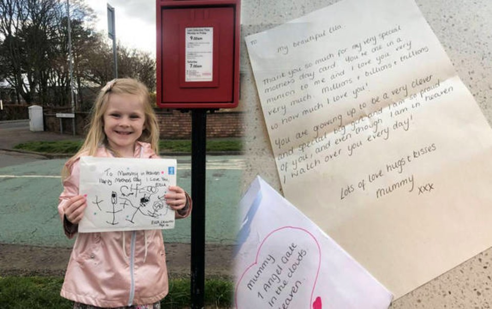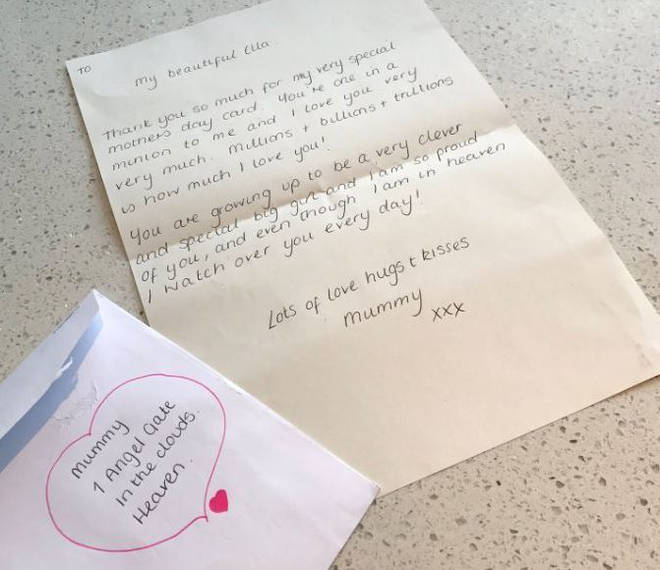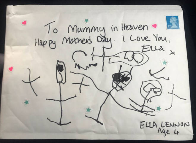 On the envelope, the girl wrote: “To mummy in Heaven. Happy mom’s day. I love you Ella ”and decorated it with a drawing and more stars and hearts.