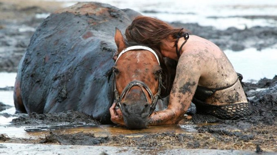 Graham had to watch her beloved horse die of the mud. However, Graham grabbed the horse’s neck and sat there next to him for 3 hours.