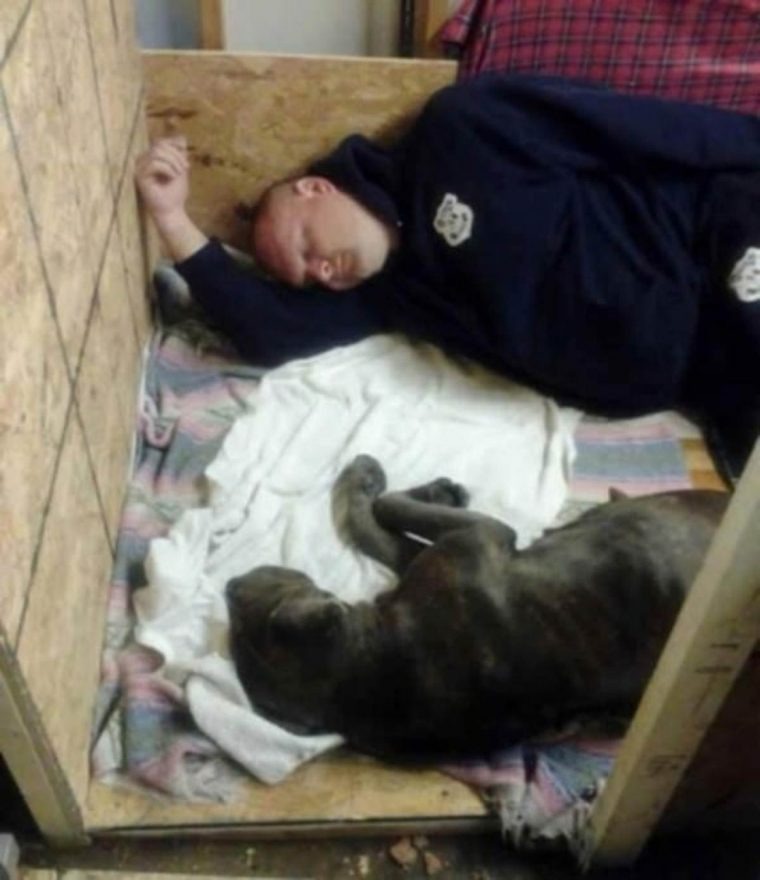 Seeing this, police officer Brandon Melbar went beyond his duties and had an attitude that would change the life of this dog… the officer offered to take the animal home temporarily because he knew that if the PitBull would end up in a shelter, it could take a long time to find a permanent home.