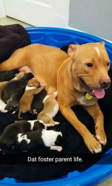 Even after all the hardships, she went through, this mother was so good and allowed her pups to be cared for.