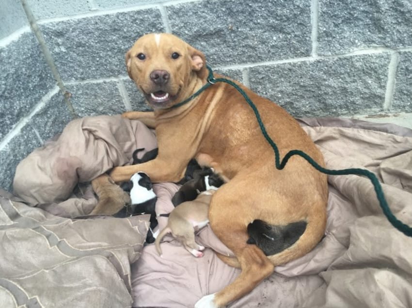 Left at a shelter’s door, a mother dog was abandoned with her ten puppies! But look what happens to her after a week
