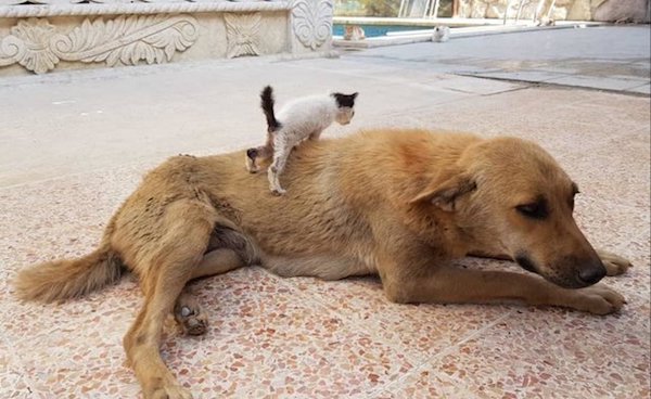 “We found them together,” said Abidin, one of the volunteers working at the Il Gattaro d’Aleppo shelter for The Dodo. “The kitten came to support Amira and she gladly accepted him. Amira really seemed to be smiling. ”
