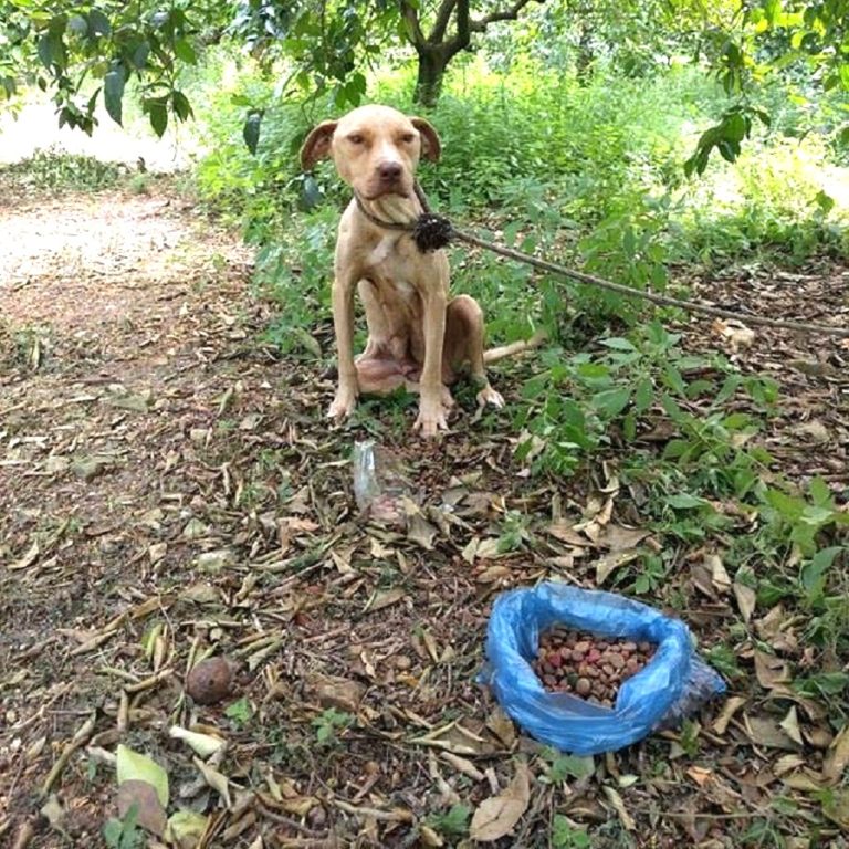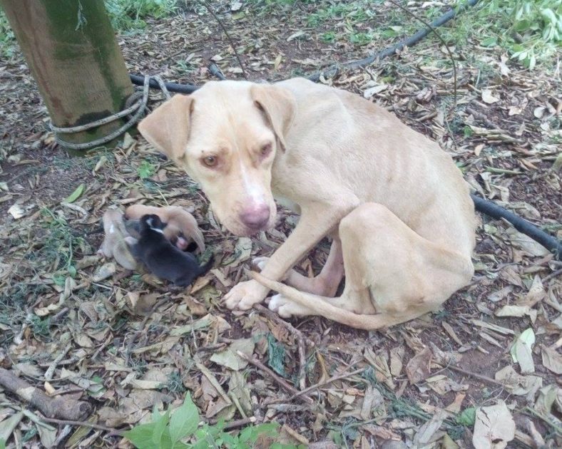 For reasons still unknown, a man tied his puppy to a tree and left her mercilessly in a forest. To the surprise of those who would observe her abandoned, she not only managed to live but kept her puppies alive for more than ten days.