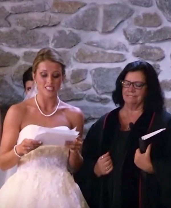 As she said her vows, she looked at the groom’s ex-wife and asked him to stand up.