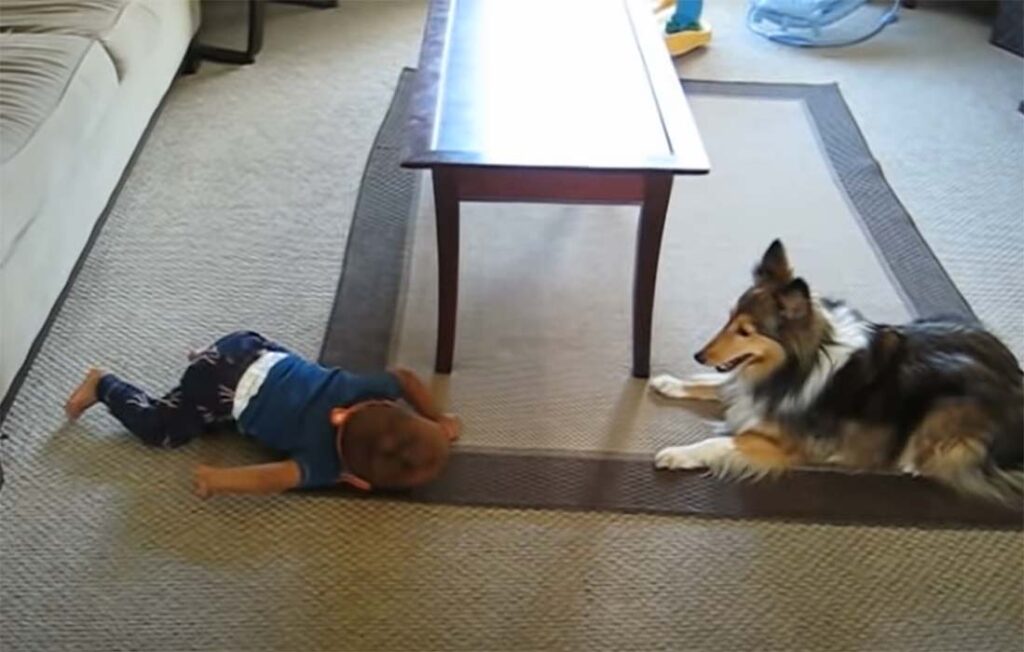 The child is very amused by the races that the family dog does around him with dizzying speed. His movements are so unpredictable that you don’t even know which way he appears happily in front of the child – as if telling him through the merry bark that he would like the little boy to run with him.