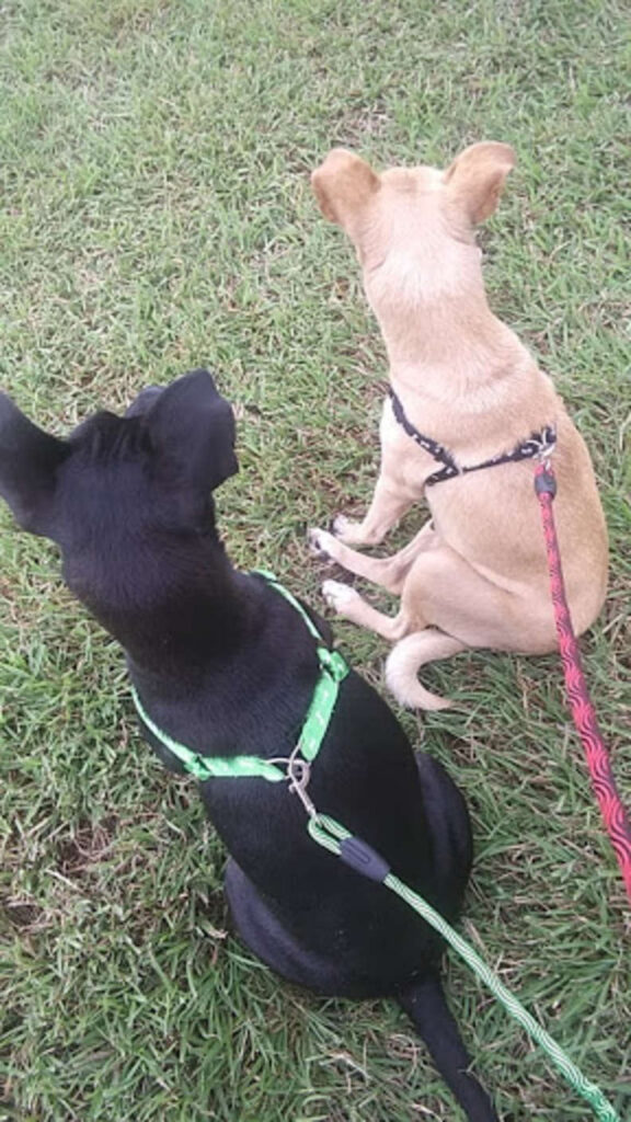 “I was near the road when I saw one of the dogs and I said to myself, ‘Oh, my God! This dog has no home, “says Destiny. “I was crying and sighing. I called my mother and said, ‘Mom, I need to take this dog home.’ I didn’t know there were two dogs at the time. ”