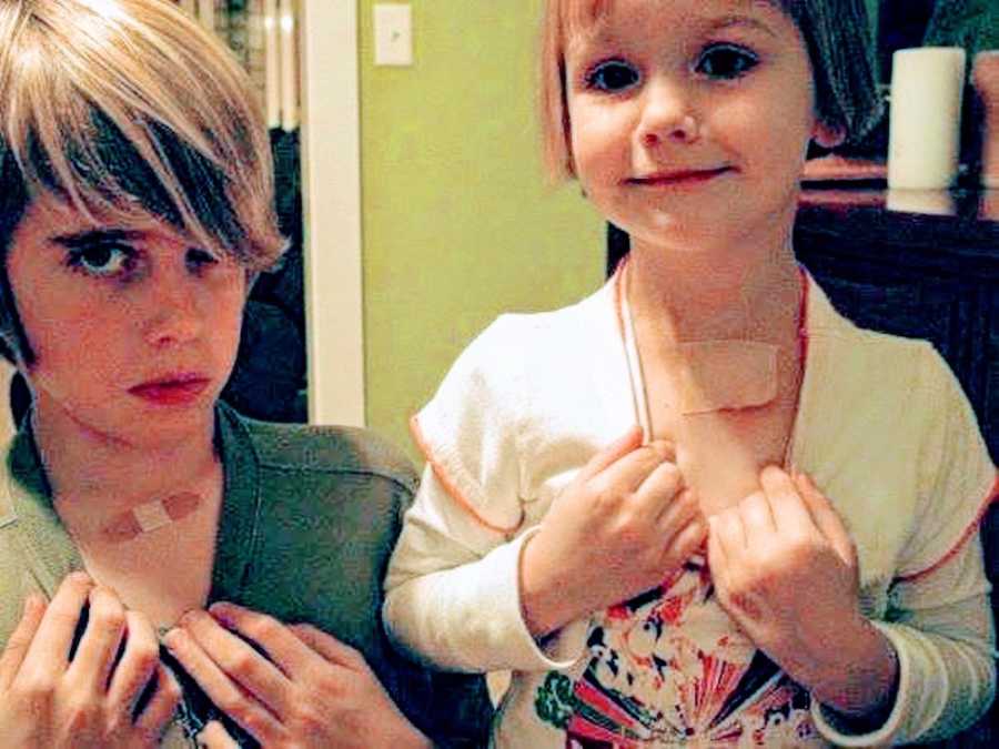 ‘Will you let Mom take off your bandage if I put it on me and let you take it off?’