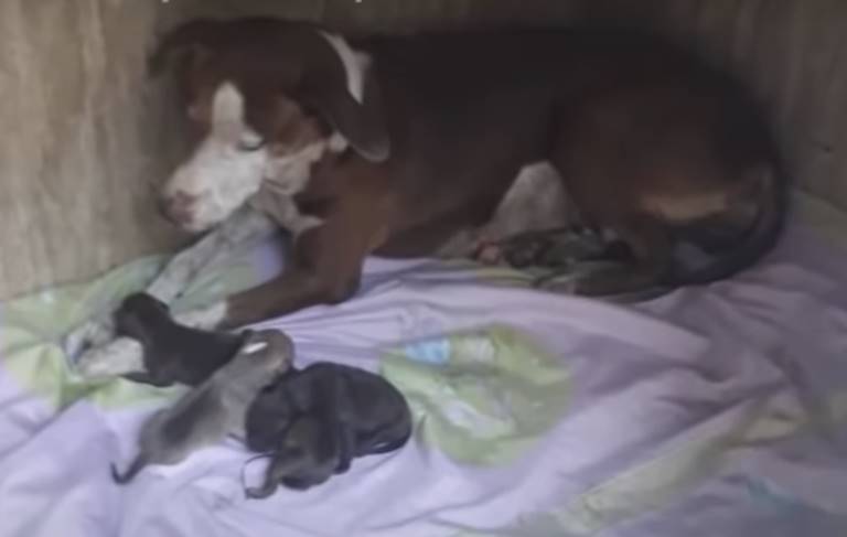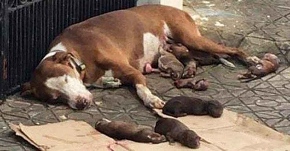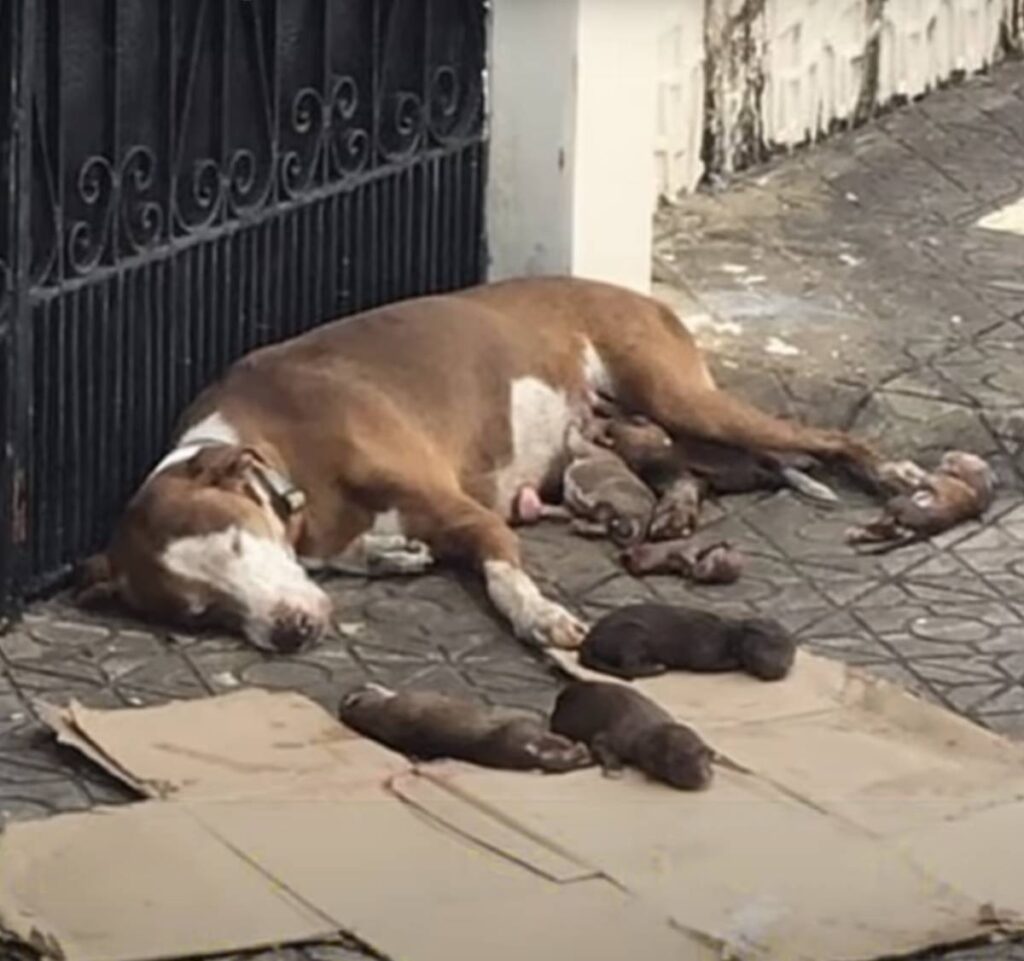 After being abandoned by her owner after she found she was unintentionally pregnant, a dog who gave birth to her pups on the sidewalk has had to confront the worst reality.