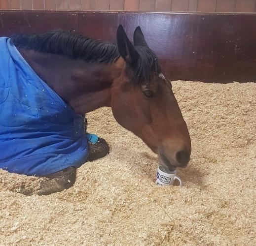 Jack, then a five-year-old youngster, approached his rider, who had arrived at the stable with a mug of sweet tea. He dipped his tongue in it and was so pleased that he now refuses to leave the stable without tasting the tea.