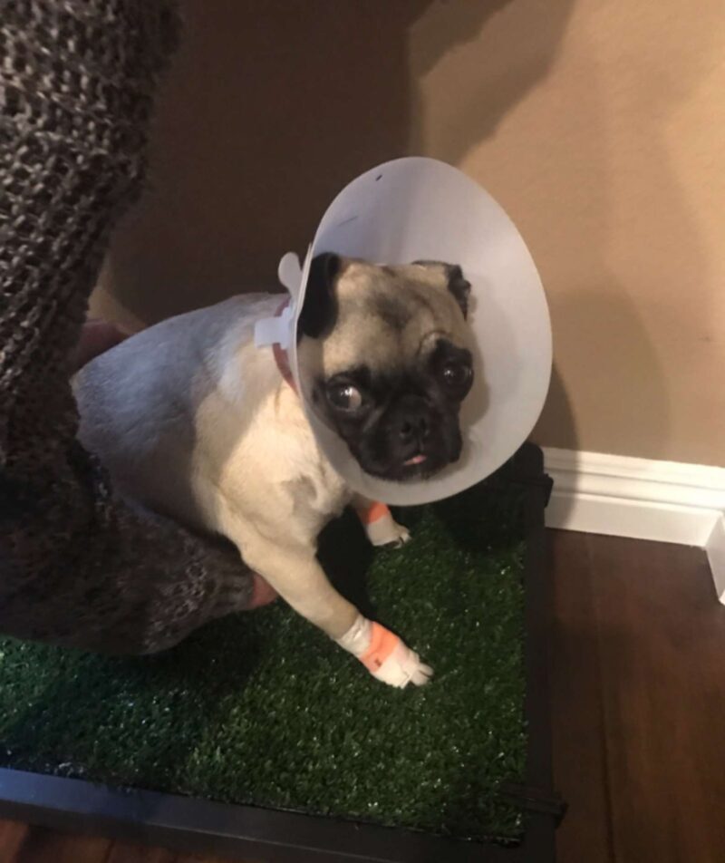 Violet’s sutures will be removed later this week, but in the meanwhile, this dedicated dog parent will continue to sleep on the floor with her.