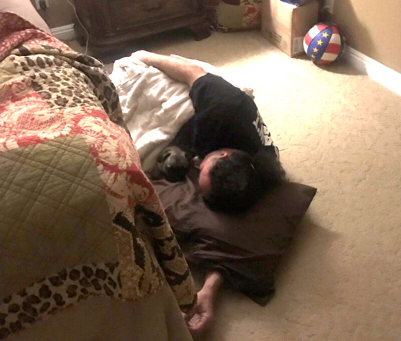 Pug Papa Camped Out On The Floor After His Wife Banned Stinky Pup From The Bed!