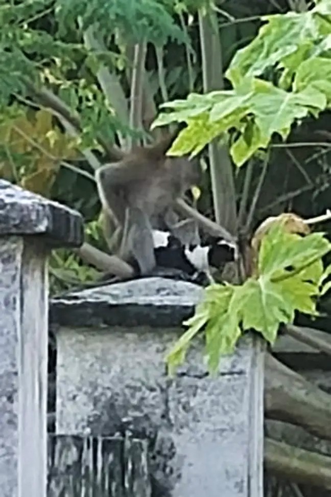 Thankfully, on the third day of the kidnapping, when the puppy was becoming weak, residents were able to drive the monkey away by throwing rocks and wood at it and firing off bangers, and the monkey eventually freed the puppy.