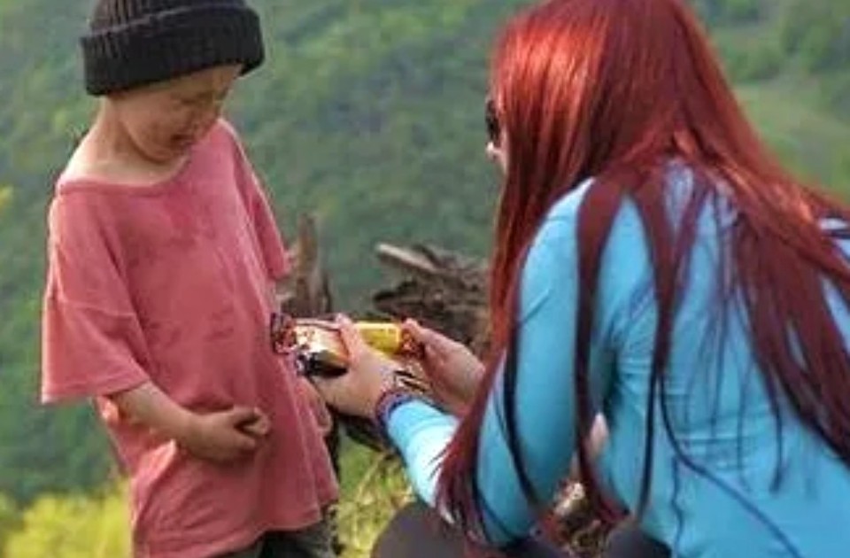 A poor child, who guards the sheep for food every day, burst into tears when he was first offered sweets.