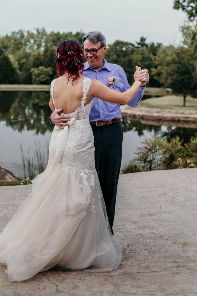 Obviously, there wasn’t enough time to find a real husband and make it happen, but I wanted to dance with my father and have him guide me down an aisle so that we could share the experience, wedding or not. My mother, sisters-in-law, and I began brainstorming ideas. What began as a simple plan for Dad and me to dance in my parents’ backyard to James Taylor transformed into something far more wonderful than I could have imagined. People started hearing about what we were planning and expressing an interest in assisting us. Before we knew it, a wedding venue owner, a videographer, a photographer, a florist, the owner of a bridal gown business, and others had reached out to offer their services. We were astounded by God’s plan unfolding before our eyes and humbled by the people, even strangers, who wanted to help us realize our dream.