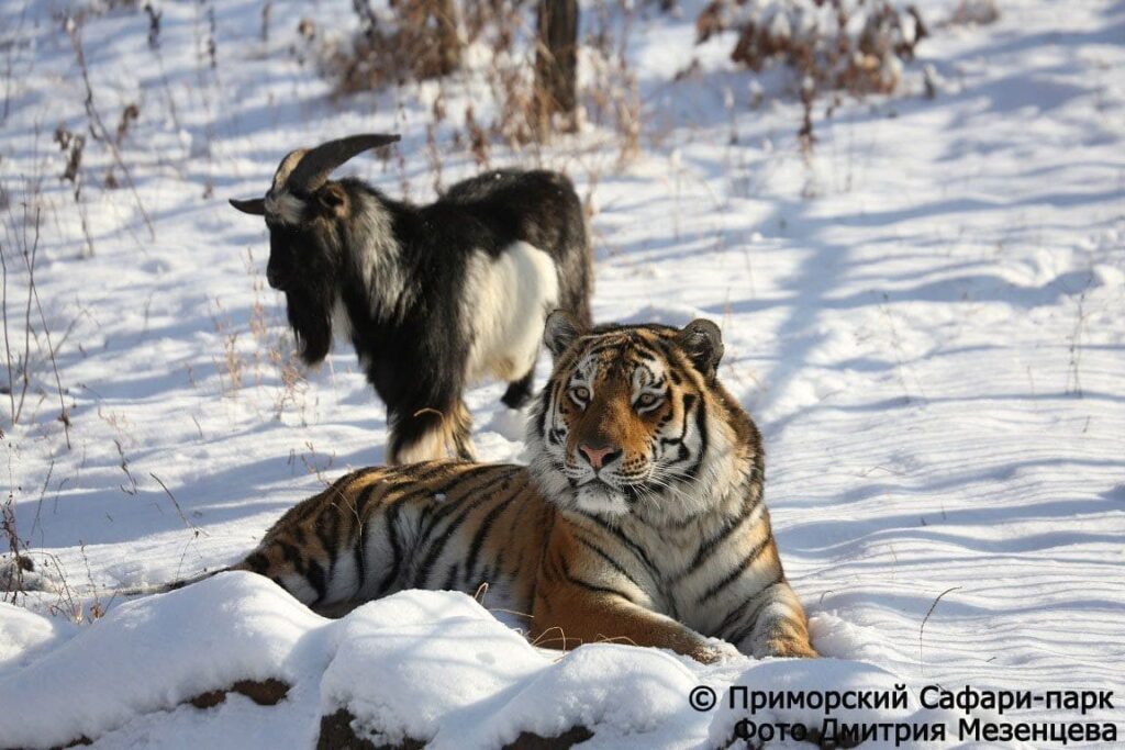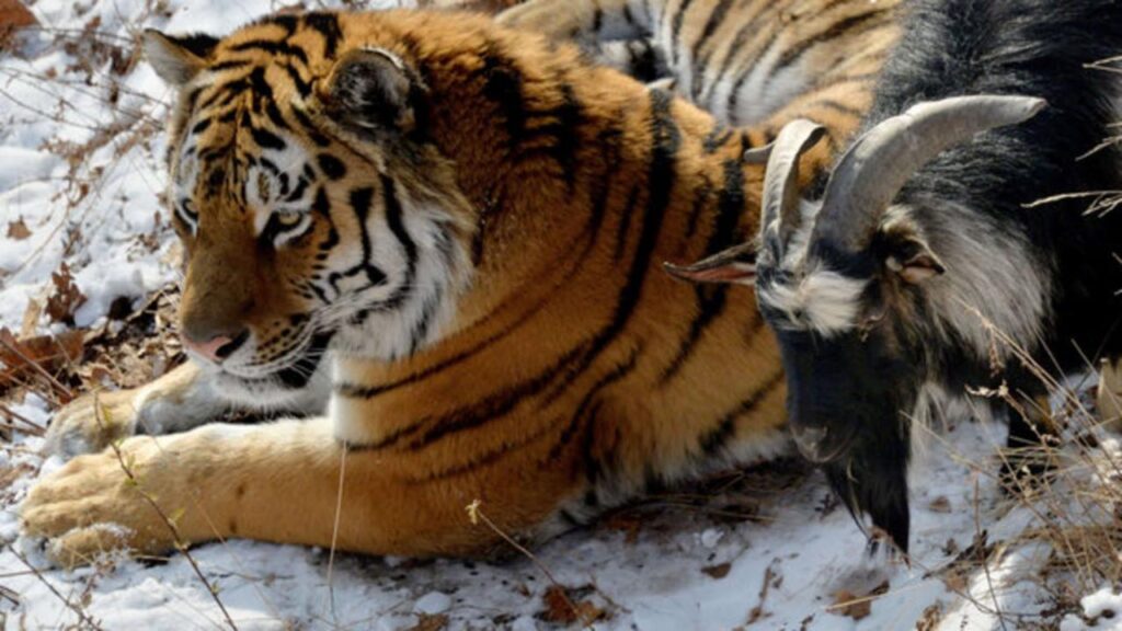 In Primorye Safari Park, Amur the tiger and Timur the goat is in this predicament. Timur was put in Amur’s cage as live food, but things didn’t turn out the way the zookeepers expected.