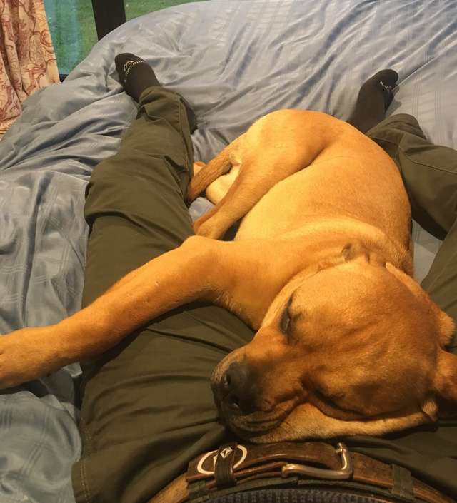 Newly adopted from the shelter, a dog thanks to his new owner!