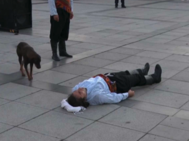 Numan Erturul Uzunsoy, a Turkish actor, was recently in an outdoor theatrical performance where he had to pretend to be injured in one part.