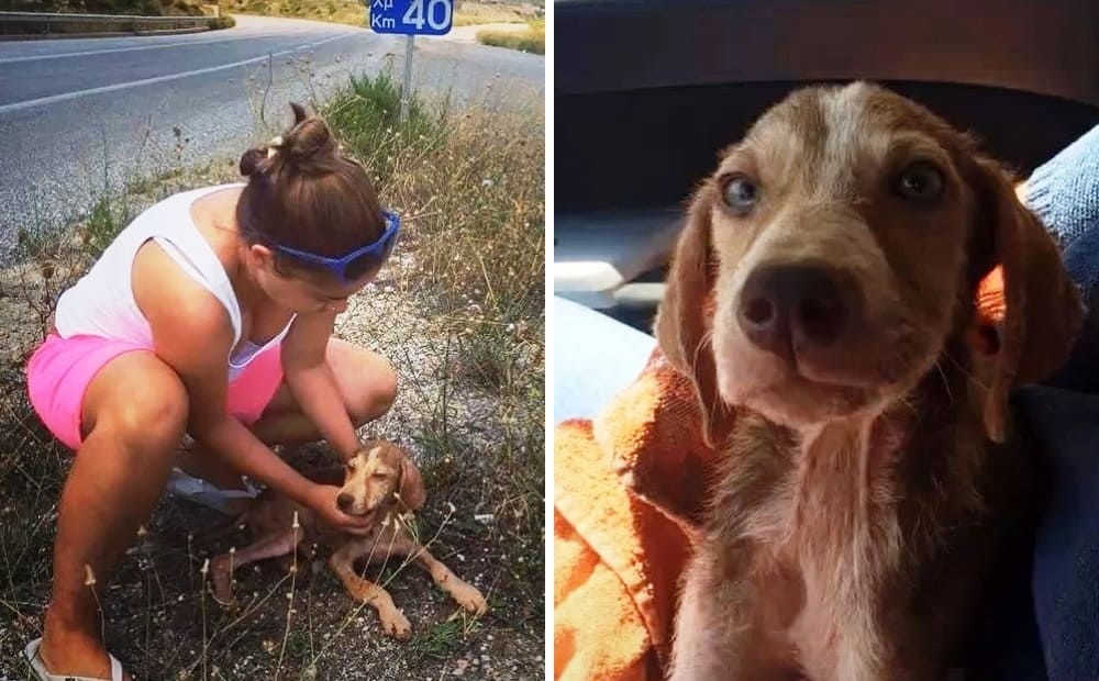 A puppy named Melios was abandoned on a highway in Greece when he was only 3 months old.