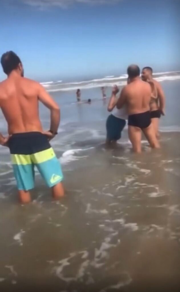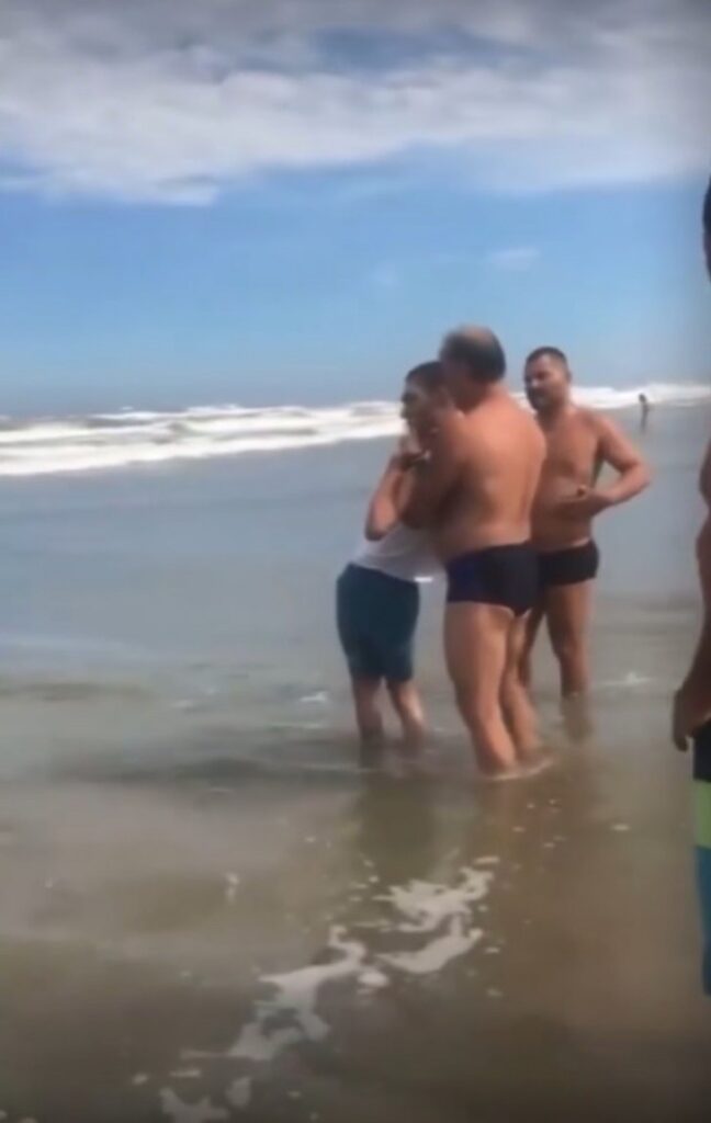 The sea was quite rough and the waves were crashing chaotically on the shore, so keeping Jonathan on his feet became more and more difficult for his father. Of the tourists who had come to watch the scene, two of them were determined to help him: without thinking twice, they took the boy and took him to an area not far from the shore.