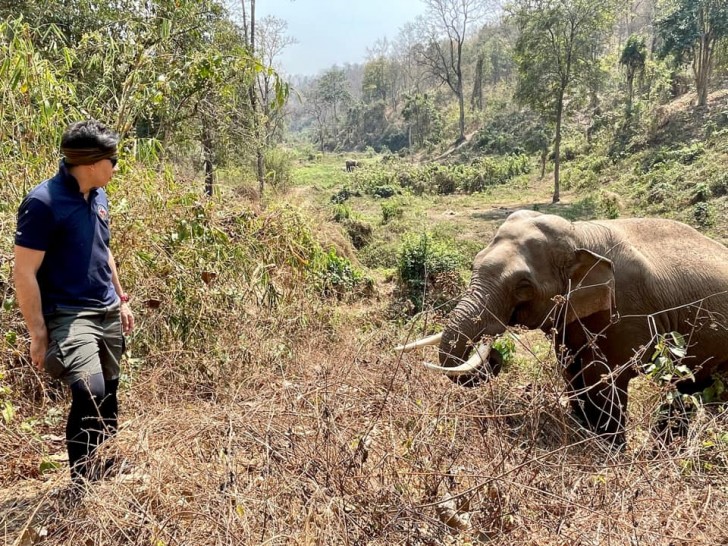 Dr. Pattarapol was patrolling the wooded area when he suddenly recognized the specific sounds of the elephant he had encountered 12 years ago: he was sure it was none other than Plai Thang! Similarly, when the two met face to face, it seems that the elephant recognized him. As a sign of friendship and gratitude, Plai Thang stretched his horn in the direction of the man, and the latter reached out to touch the animal.